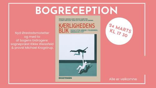 Vi inviterer til bogreception mandag 24. marts kl. 17.30, når en ny bog om sognenes sociale arbejde ser dagens lys og hvor vores præst Rikke Weissfeld og vores provst Michael Krogstrup Nissen er blandt bogens bidragydere.