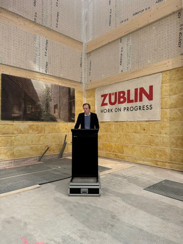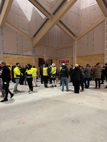 Som ved fejringen af 1. spadestik i juni 2025 skal der også lyde en tak til Henning Larsen Architect for at tegne denne utrolig smukke trækirke til Ørestad og hele København, ja hele Danmark. Den første egentlige folkekirke, der er bygget i København siden 1989, og den første nyopførte trækirke i Danmark i mange hundrede år. Og til Züblin, en stor tak for med jeres ekspertise i bæredygtigt træbyggeri at gå ind i projektet og tage denne opgave på jer.
